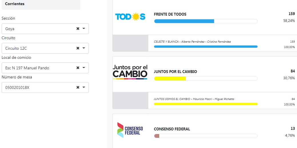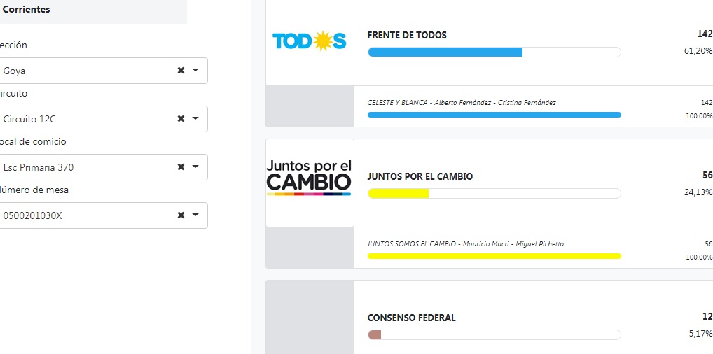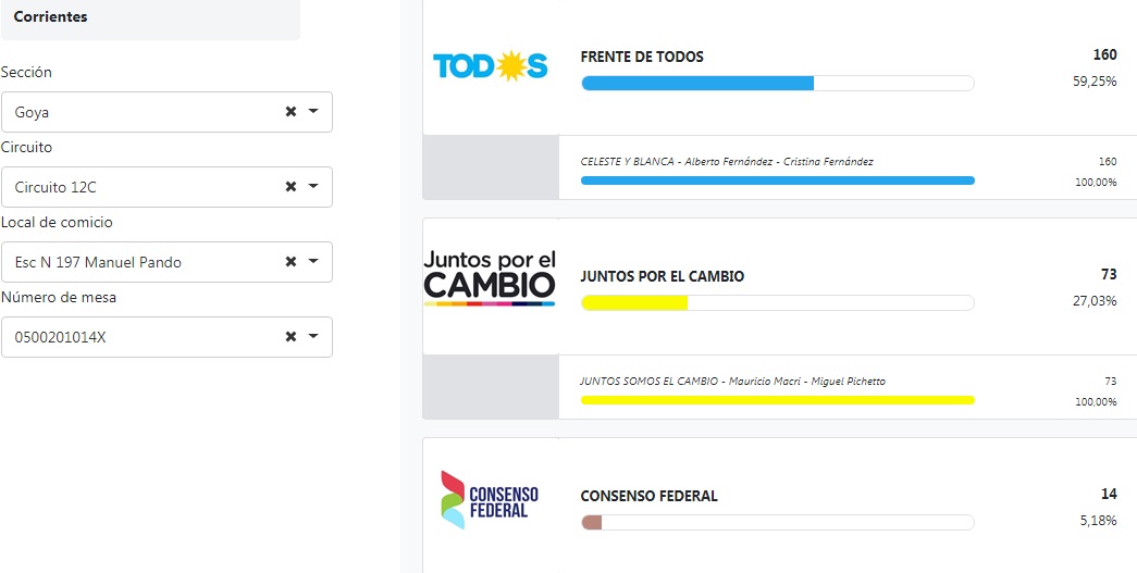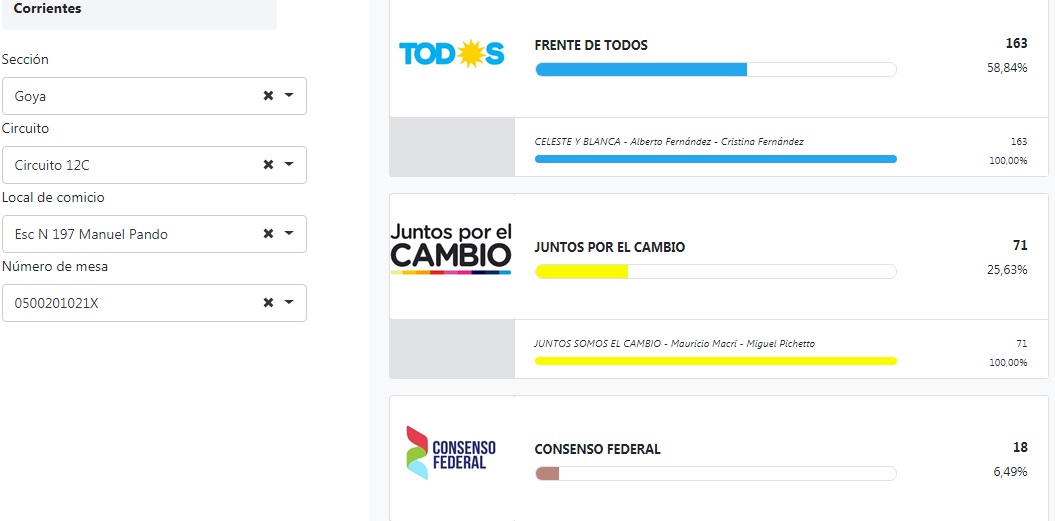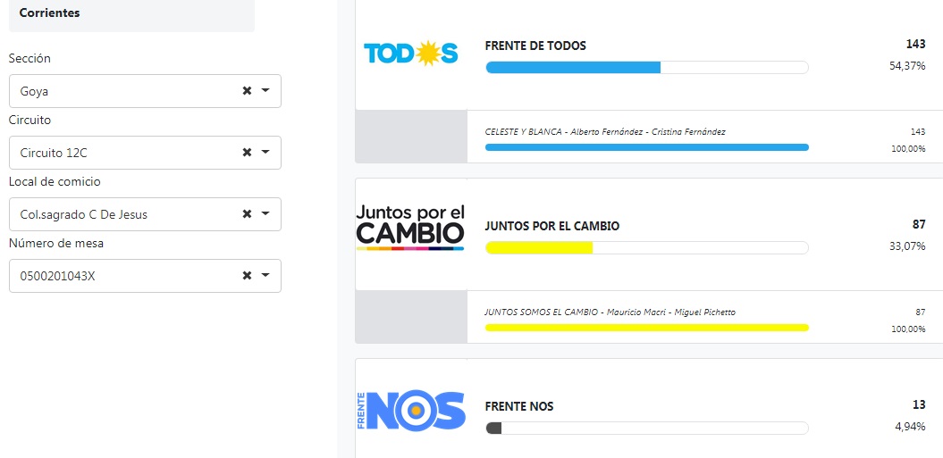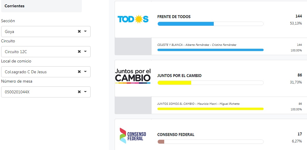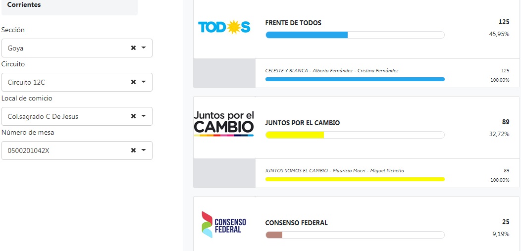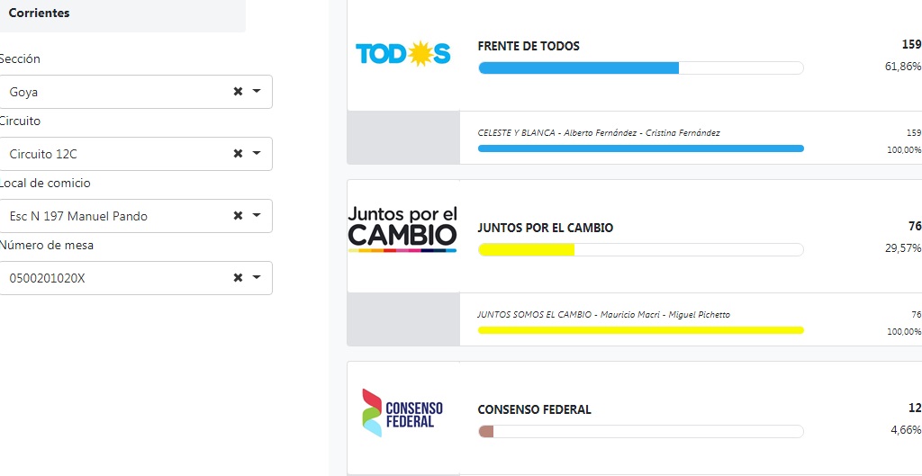 En las 3 escuelas que integran el Circuito 12C Alberto y Cristina triunfaron con más del 52% de los votos, en el mismo participaron 8.739 electores de los cuales 5.056 fue para el Frente de Todos. Entra en la nota y mira los resultados de tu mesa.