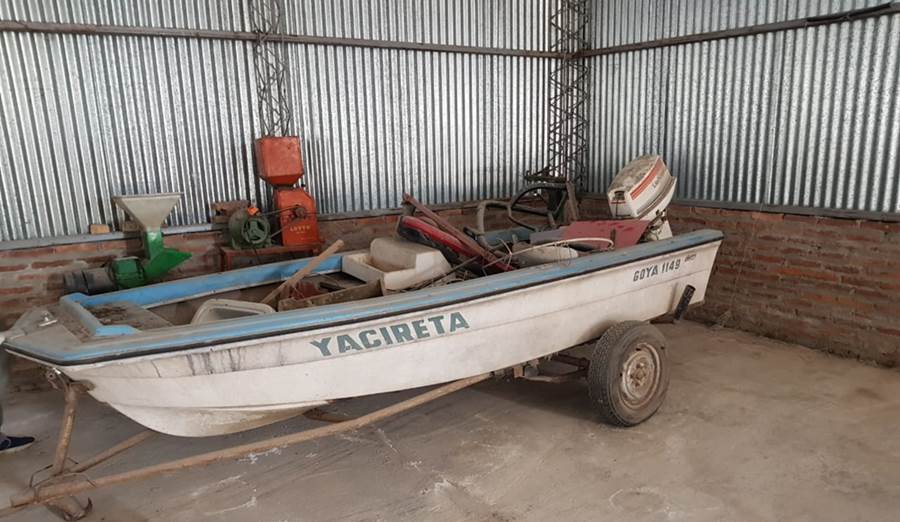 En Santa Lucía a las 11hrs del martes, se realizó allanamiento conforme a Causa CENTURIÓN GASTÓN, DENUNCIA P/SUP ROBO CALIFICADO, con intervencion del JUZGADO N3 GOYA. se procedió al secuestro en el barrio Sagrado Corazón una lancha con motor Johnson 35 hp marca Yacireta. Esta fue sustraída hace 2 meses zona Ejido norte del Galpón Cesar Sagario. Hay una persona apellido Pozzer detenida. IMAGENES