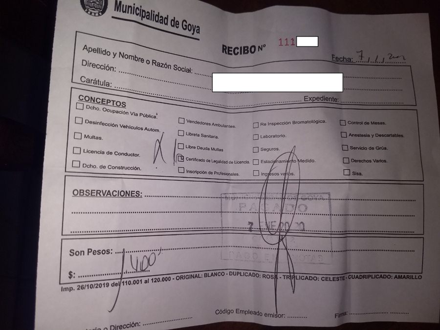 El municipio no tiene insumos para imprimir carnet de conducir, pero igual te cobra y te da un papel para circular