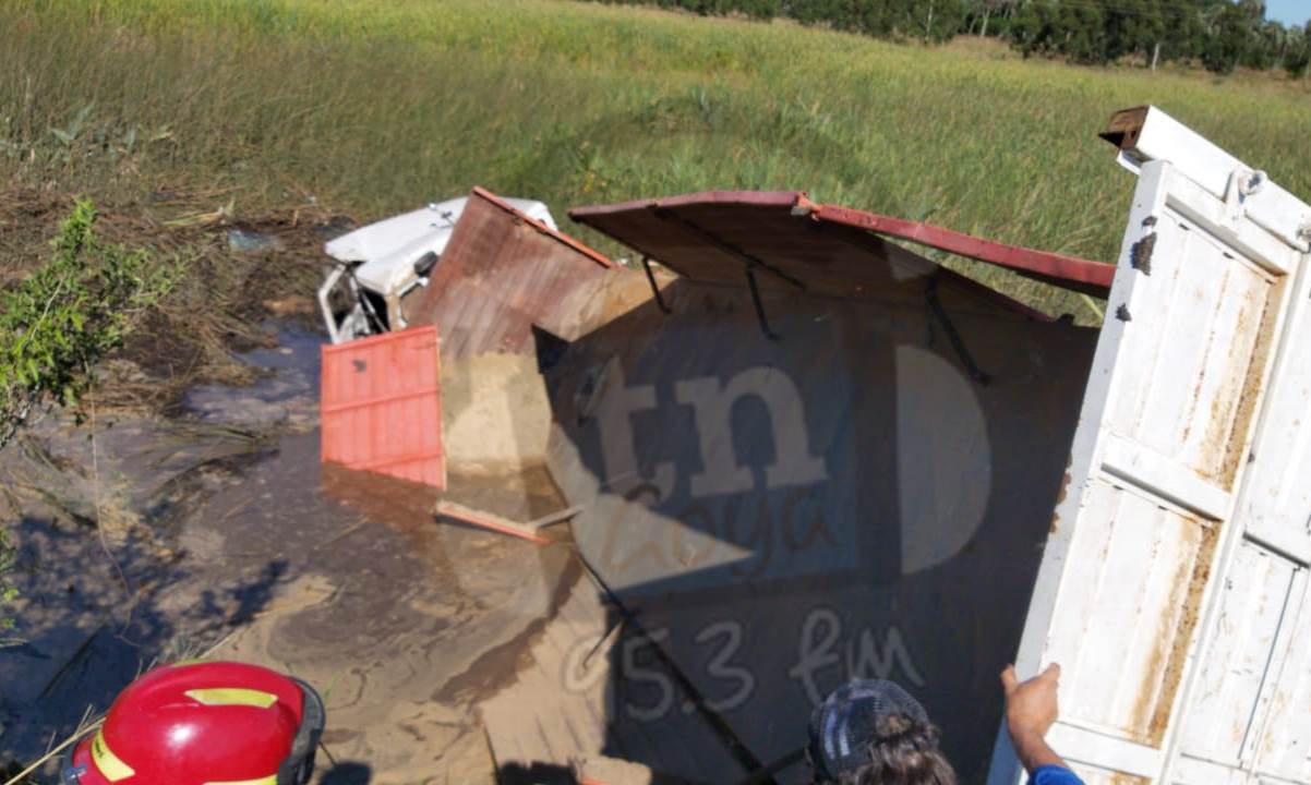 Ocurrió pasada las 09hs, fue en Ruta 12 KM 740 aproximadamente. La víctima fatal es conductor de un camión fue identificado como Liborio Gauto que transportaba arena de la empresa ConNEA SA, partió de nuestra ciudad con destino a Esquina. Policía y Bomberos trabajan en el lugar.