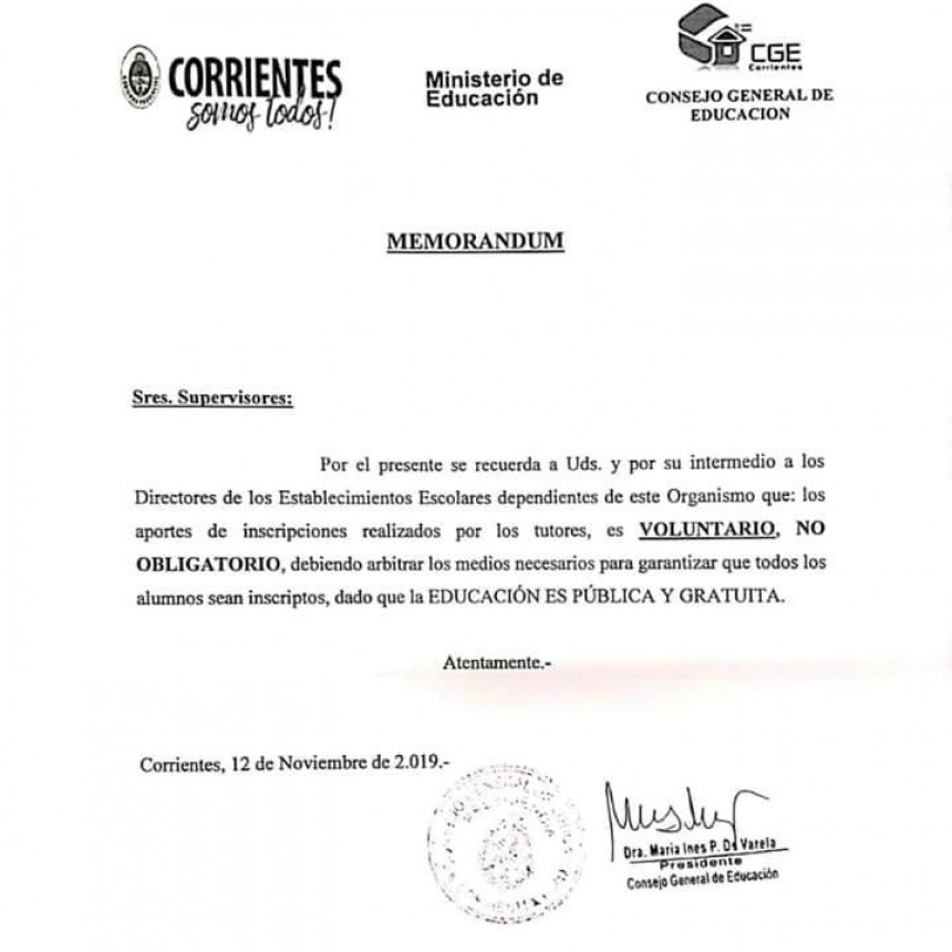 Esta semana volvieron los docentes a las escuelas y tutores se acercaron para consultar monto de inscripción a las mismas. Los montos van de $300 a $1000, muchos manifiestan que tienen más de 3 hijos y se hace casi imposible pagar. Si no lo hacen no le aseguran el lugar. Recordamos el memorándum que emitió el Ministerio de Educación en 2019 donde dice que no es obligatorio el cobro de inscripción. Mira en la nota.