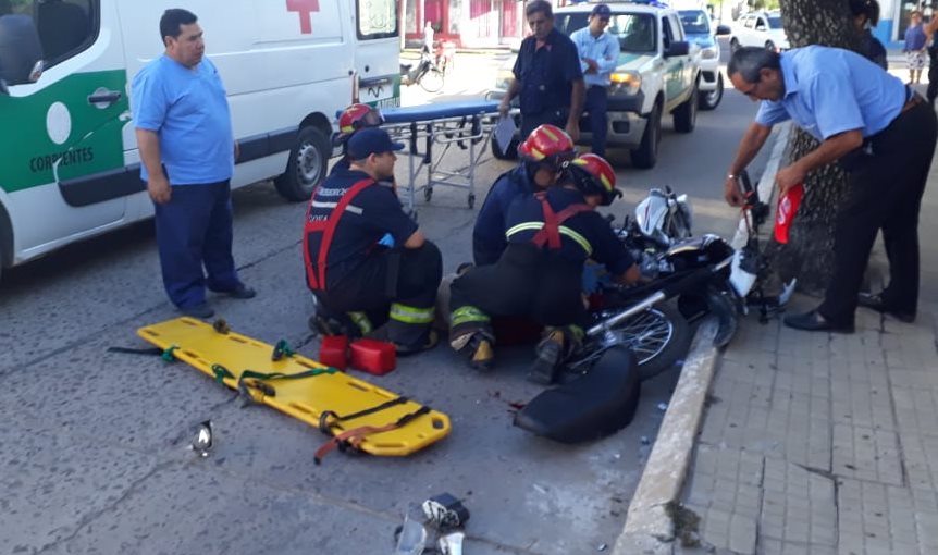 En la mañana del domingo un motociclista perdió el control y se estrella contra un árbol, el siniestro vial ocurrió pasadas las 08 hs, en la intersección de las calles Juan Pujol y Colon. Fue asistido por Bomberos voluntarios y trasladado al Hospital en ambulancia. Los datos del herido se desconocen, estaba inconsciente al momento de llegar las autoridades.