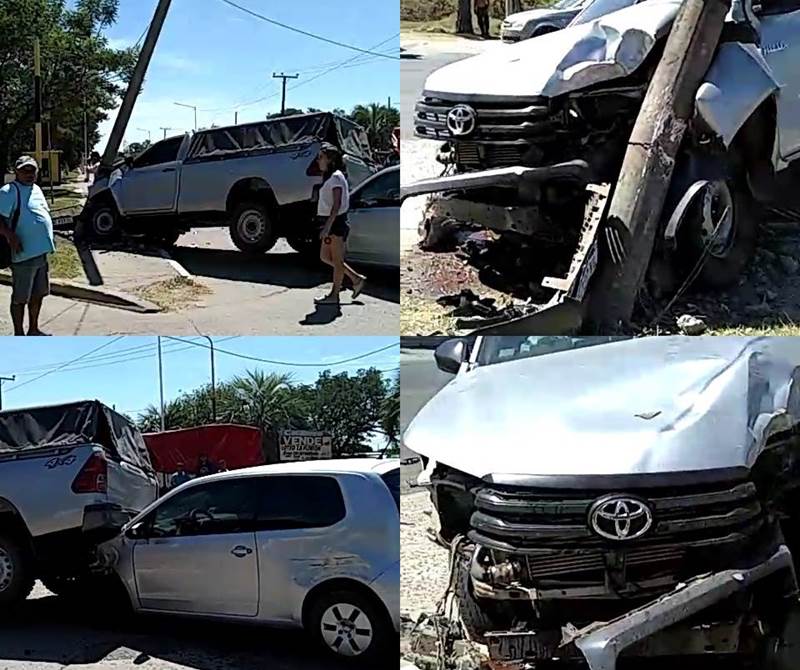 Aproximadamente 15 hs del viernes se registró un impresionante choque por Avenida Mazzantti, frente al Hospital de Goya. Un automóvil que pretendía ingresar al nosocomio impacto de atrás a una camioneta que fue arrastrada y termina estrellándose contra un poste de tendido eléctrico. No hubo heridos, solo daños materiales como se aprecia en el video.