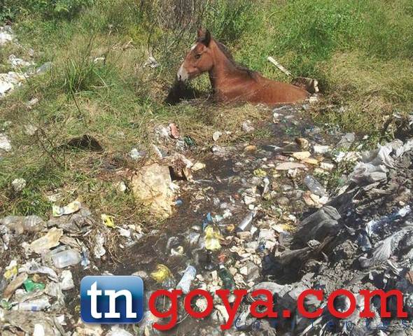 Bomberos rescato equino que cayo en un pozo en el basural de Goya