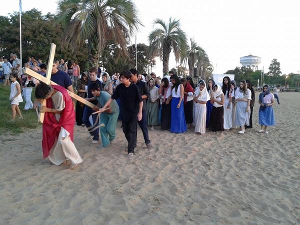 EL viernes 3 de mayo, en horas de la tarde, alumnos de Catecismo de la Iglesia Catedral de Goya, con la colaboración del Elenco del Teatro Municipal representaron el “VÍA CRUCIS”, en la Playita “El Ingá”, bajo la dirección de Daniel Spataro y Andrea Videla.
