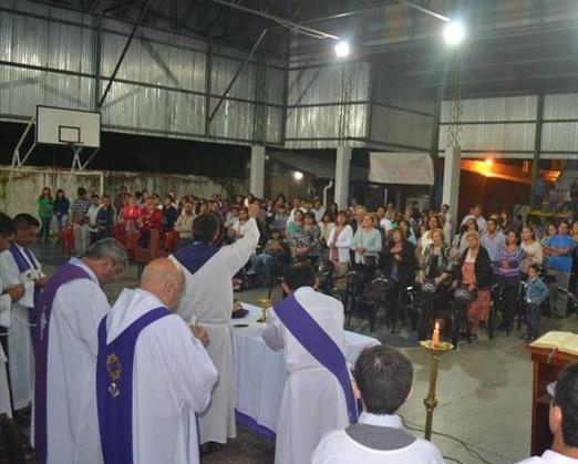 En la noche del sábado, ofició una celebración en Santa Lucía y al cierre de esta edición lo hacía en la parroquia Itatí de la comuna goyana.