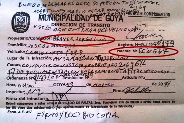 En la madrugada del lunes en un procedimiento de rutina que realizo en las avenida Mazzantti al 10 por el Area de Alcoholemia de la municipalidad de Goya encabezada por su encargada la señora Norma Bianco junto a un equipo de Inspectores de Transito a cargo del director el señor Javier Macias procedieron a labrar acta a una camioneta Ford del IPT dominio ECN 567 el que era conducido por el señor BRAYER Jorge Luis a quien se procedio a realizarle el control de alcoholemia y le dio 2,69 grados.