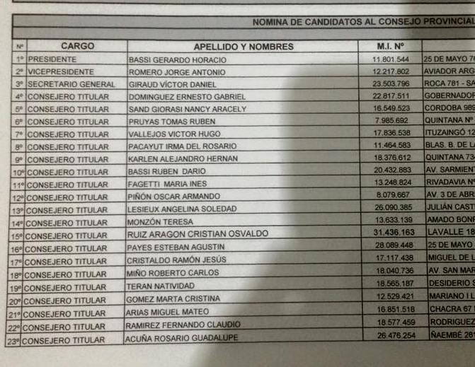 La Junta Electoral recibió ayer a las 19.50 la nómina de los candidatos de esta lista de unidad que incluye a los sectores liderados por Ríos, Camau, Tamandaré y también a Galantini. El hombre del consenso para presidir el PJ a nivel provincial es Gerardo Bassi.
