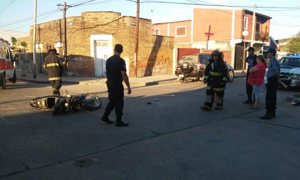 En Beron de Astrada y 9 de Julio, aproximadamente las 07:20 hs, una mujer que iba a bordo de una motocicleta, embistio de lleno contra una camioneta, la motociclista caya pesadamente al pavimento y resulto con golpes en la cabeza. Cronista trabajando en el lugar. FOTO