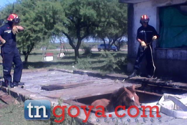 Un equino cayo en un pozo en la mañana del miercoles, el hecho tuvo lugar en el puerto Boca donde funcionaba la balanza. El animal quedo atascado entre los hieros y fue rescatado sano y salvo por una doracion de bomberos voluntarios de nuestra iudad. IMAGENES