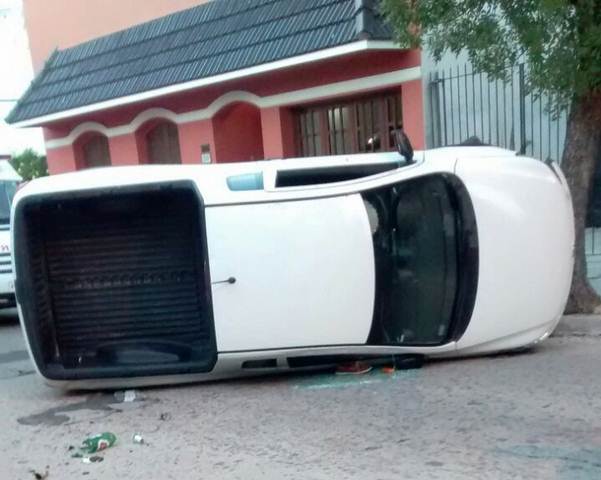 En la mañana del sábado un conductor de apellido Sellares que iba a bordo de una camioneta Saveiro tumbo. El hecho ocurrió por calle Evaristo López entre las intersecciones de Ejercito Argentino y Juan E. Martínez en pleno centro de la ciudad. Afortunadamente solo recibió lesiones menores, las autoridades hallaron varias botellas de cerveza en el interior del rodado. IMAGEN
