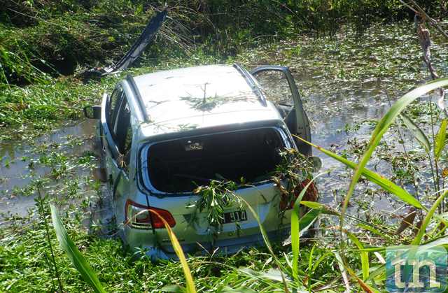 Cerca de las 10,30 horas de la mañana del lunes un hombre de apellido FIRKA quien conducía un VW Suran de color gris dominio LYH 514 tras perder el control del rodado, derrapo por más de 30 metros, dio varios tumbos según testigos oculares y termino en medio del canal abierto. Afortunadamente venia solo y salió por sus propios medios hasta quedar junto a la banquina. (IMÁGENES)