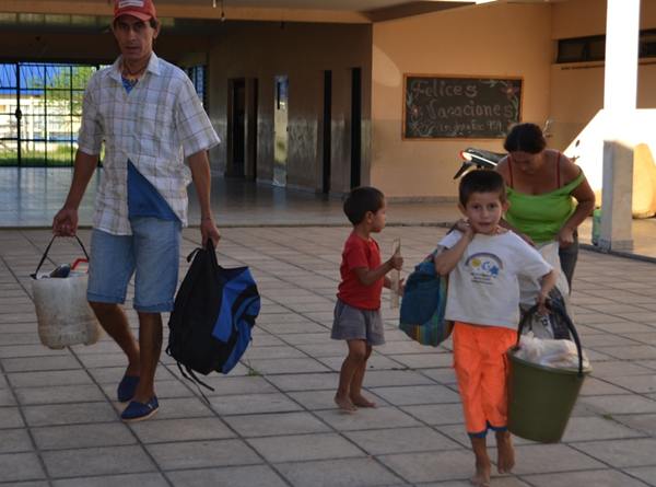 En la tarde del viernes unas 2 familias evacuadas volvieron a sus casas y mañana sábado regresarán otras 4, luego de 33 días de estadía en las escuelas. Bomberos Voluntarios y municipio trasladaron a los damnificados y sus pertenencias. Unas 12 familias más regresarían la semana que viene, dependiendo de las condiciones climáticas. En tanto que continúa la asistencia del gobierno nacional, provincial y municipal.