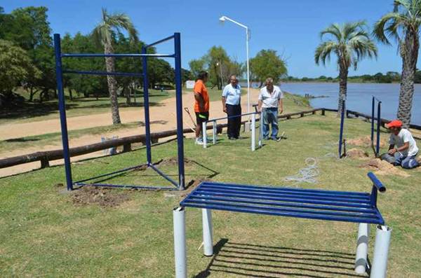 La Dirección de Deportes colocó en la Playita El Inga de nuestra ciudad aparatos de gimnasia para que todos los goyanos realicen actividad física al aire libre.