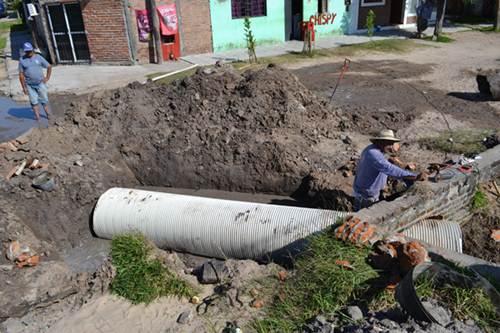 La municipalidad de Santa Lucia intensifica las obras de desagües y alcantarillado en distintos barrios de la ciudad, sobre todo aquellos que se ven afectados por las intensas precipitaciones.