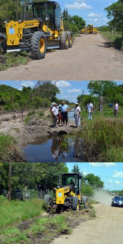 Obras Públicas efectúa trabajos de perfilado, corte de pasto y limpieza general para contribuir a normalizar el barrio Santa Clara, que fuera afectado por las copiosas lluvias. El Intendente Gerardo Bassi y el Secretario de Obras y servicios Públicos Concejales recorrieron el sector.