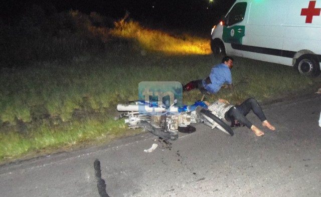 UNICO MEDIO: Vehículo colisiona a pareja en motocicleta que transitaba sin luces sobre ruta