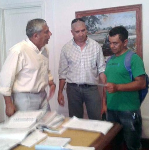 El intendente Gerardo Bassi junto al coordinador de Discapacidad, Armando Gómez, hizo entrega el miércoles, de un subsidio a la familia del menor Alan Quiroz. El sencillo acto se cumplió en el edificio municipal, donde se hizo presente Alejandro Quiroz, padre del Alan, quien está afectado de una severa enfermedad.