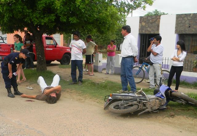 Un motociclista de apellido Avalos iba a bordo de una motocicleta Yamaha Cripton 125 c.c, de sur a norte por Avenida Juan Perón, y derrapo a la altura de 2550 cuando intentaba cruzar de carril. El conductor se encontraba ebrio y al caer pesadamente al pavimento resulto con heridas cortantes en el cuero cabelludo. IMAGENES