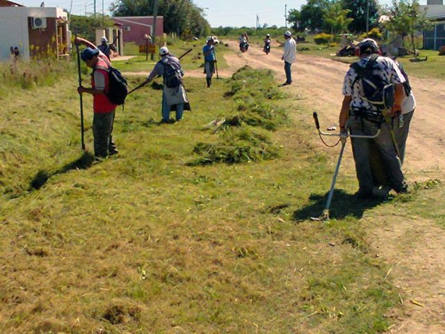 Intenso trabajo de corte de pasto y limpieza en el Barrio Ñapindá