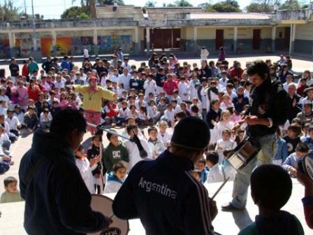 En el marco del “Manos a la Obra”, este miércoles en horas de la mañana talleristas de la Dirección Municipal de Cultura organizó una jornada denominada “Cultura en el Aula” en el patio de la Escuela Nº 66 José de San Martín, la “Escuelita del Sur”. Los alumnos disfrutaron de talleres de títeres y de Percusión, a cargo del Payaso Nachín y de Silvio Domínguez respectivamente.