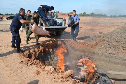 Personal del Ministerio de Producción y Trabajo de la provincia y el SENASA con fuerzas vivas, realizaron el decomiso y desnaturalización de carne porcina provenientes de las carnicerías de la localidad. El intendente municipal, José Sanánez, se reunirá con los carniceros de la ciudad para llevar adelante acciones conjuntas que prevengan la triquinosis.