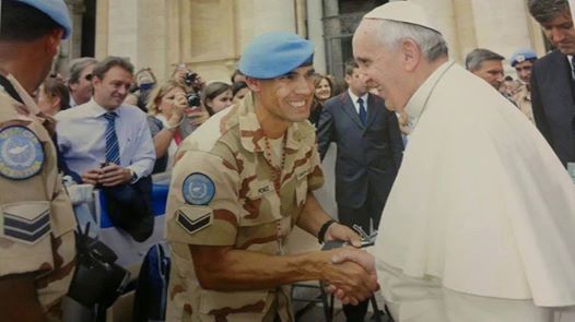 Soldado goyano perteneciente a los cascos azules saludo al Papa Francisco