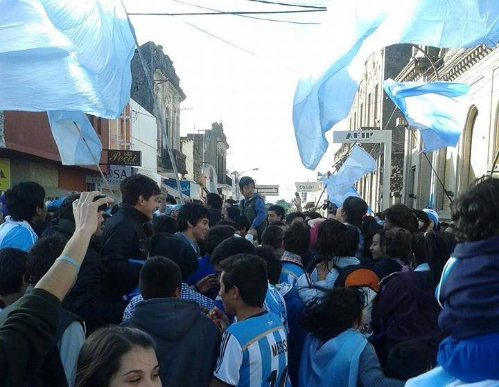 Los jóvenes coparon la Plaza Mitre para festejar la clasificación a cuartos de final de la selección Argentina. Gritos y cantos llenos de felicidad junto a los colores celestes y blancos fueron los constantes en horas de la siesta en nuestra ciudad. Sin dudas que Messi y Di Maria fueron nuevamente figura del partido, donde la esperanza ya está puesta en el próximo partido. Todo esto lo registro TNGoya, el diario digital que está cerca los todos los hinchas de la Selección.