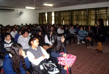 Más de un centenar de alumnos de 3ro y 4to año del Colegio “Dr. Juan Eusebio Torrent” participaron de la charla de la Dirección de Derechos Humanos de la Municipalidad de Goya. El rector del establecimiento educativo, Prof. Hugo Debortoli, recibió a la directora municipal, Prof. Alicia Helena Casabonne y su equipo de trabajo.
