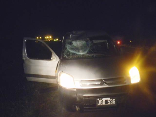 Una camioneta marca Citroën, conducida por un hombre de apellido Pujol embistió a un equino cuando transitaba sentido Sur-Norte, en la noche del jueves, sobre Ruta Nac. 12 en el acceso sur de Goya, el conductor relato a cronistas de TNGOYA, que nada pudo hacer ya que dos equinos se les atravesaron al frente y a uno no pudo esquivar y terminaron chocando. Afortunadamente solo se registró daños materiales, en el rodado en la parte derecha, con rotura del parabrisas y abolladura en la parte del techo. IMÁGENES