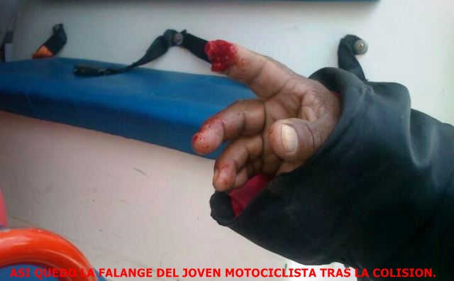 En choque motocicletas un conductor perdio parte de un dedo
