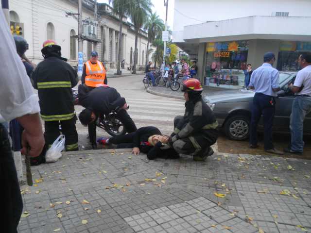 En la esquina de Mitre y Mariano I. Loza una mujer de apellido Gómez que iba a bordo de una motocicleta de 70 c.c, resulto lesionadas en una pierna al caer pesadamente en el pavimento, luego de que fuera impactada desde atrás por un automóvil, que oficia de remis. Fue asistida por bomberos y luego trasladada al nosocomio local. IMAGENES