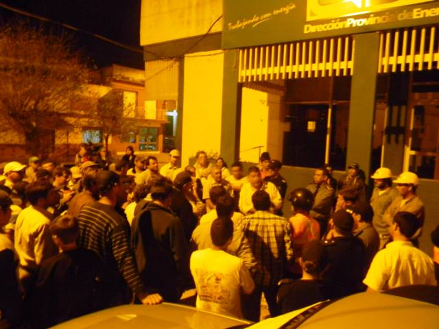Los pobladores luego de estar apostados cortando la calle frente a la oficina de la Dpec, fueron recibidos por Adrián Gonzales, donde las personas fueron informadas de los problemas de la zona del Zorzalito, y según relato Gonzales el día miércoles comenzarán a trabajar arduamente para solucionar o más rápido posible el tema energético, que desde el día sábado no hay en la zona. FOTO DE LA REUNION EN LAS AFUERAS DE LA OFICINA