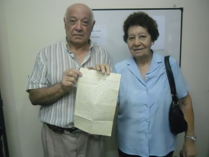 Ángela Isabel Silva de Oviedo y su esposo Ramón Oviedo, quienes hace 32 años recibieron una carta de soldado correntinos que combatían en Malvinas. Luego de tanto tiempo los señores Oviedo la mostraron por primera vez de forma exclusiva.
