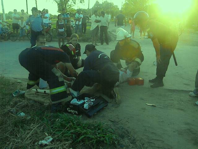 Alrededor de las 18,30 un joven motociclista identificado como Moreira quien se desplazaba a bordo de una moto Honda Wave de color negra dominio 653 JRA de norte a sur por calle Pago Largo y al llegar a la intersección de calle Mercedes termino impactando la parte trasera de una camioneta Toyota chapa patente DSI 589 guiado por el ciudadano Vicentin Pedro. (IMÁGENES DEL LUGAR)