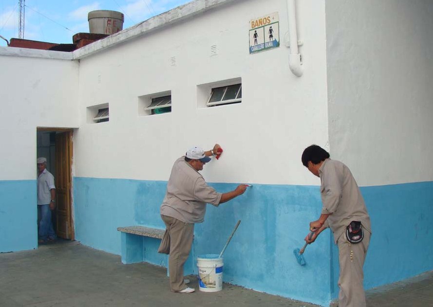 Personal destinado en la dirección de Obras, está refaccionando dependencias de la Terminal de Ómnibus para que sean usadas por la Guardia Urbana. Trabajos de pintura y albañilería también se efectúan en el predio Costa Surubí y en el Hogar de Ancianos San José.
