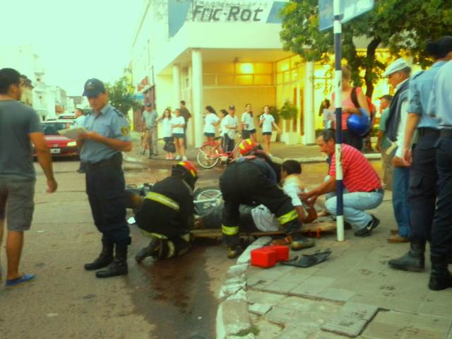 Un joven oriundo de Carolina a bordo de una motocicleta 125 c.c, que transitaba por Calle Juan E. Martínez embiste de lleno a una camioneta Crossfox que circulaba por calle Colon. El motociclista de apellido Fabro salió despedido y cae pesadamente al pavimento, resultando con lesiones en una pierna. Fue asistido por una dotación de bomberos y luego trasladado al Hospital Regional. IMÁGENES