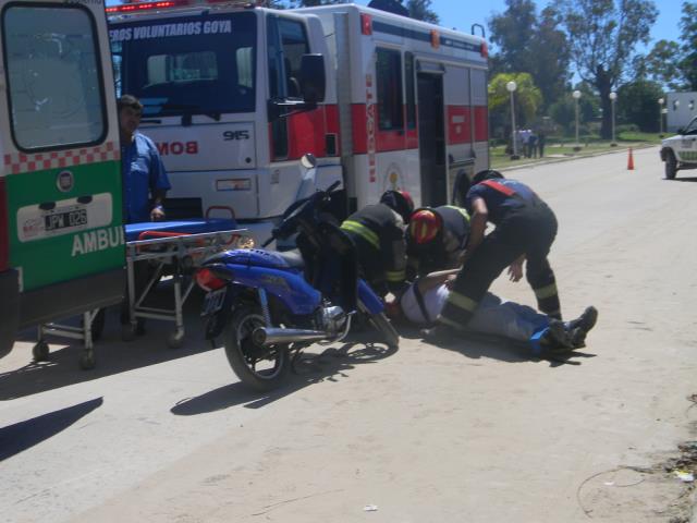 El siniestro vial ocurrió en Av. Juan Perón casi Eva Perón de la zona Sur de Goya, donde una joven de apellido Ledesma que se trasladaba a bordo de una motocicleta marca Citi de 110 c.c, embiste de atrás una bicicleta, quienes se desplazaban un hombre y mujer de apellido Godoy y Chamorro, la motociclista relato que manipulo un celular y eso causo el choque, los ciclistas fueron los lesionados cayendo al pavimento pesadamente, fueron asistidos por una dotación de Bomberos y luego trasladados al Hospital Regional. IMÁGENES