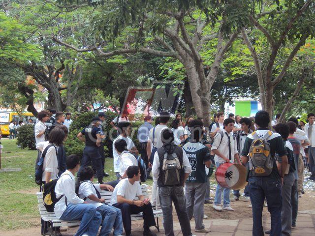Luego que acudieran a las aulas y fueron mandados a sus domicilios producto del paro docente, la mayoría de los estudiantes de Goya fueron a la Plaza Mitre con bombos y bombas de estruendo y todo parecía el cierre de un ciclo lectivo. Todo el festejo termina cuando comenzaron a ingerir bebidas alcohólicas (cerveza, vino) y se descontrolan empezando a dañar dicho lugar, luego de la voz de alerta por parte del placero habrían generado enfrentamientos, dónde hasta hubo algún que otro golpe de puño. Al lugar debió acudir personal policial de la comisaria primera llevando demorados a dos alumnos de apellido Gonzales quienes son hermanos. IMAGENES