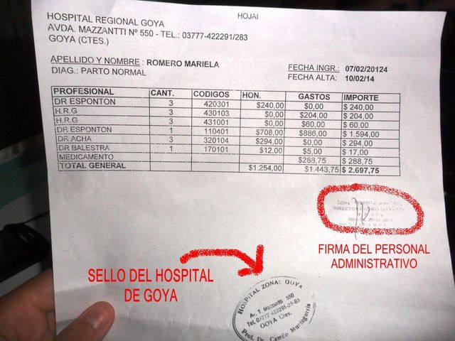 Nos dirigimos a toda la comunidad a fin de aclarar a la opinión publica las graves acusaciones vertidas en distintos medios de comunicación, realizados por la señora Mariela Romero, el día 13 de febrero del corriente año, quien manifiesta que el Hospital Regional Camilo Muniagurria pretendió cobrarle la suma $ 2.700 por el parto de su bebe.