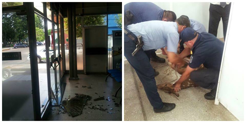 Bella Vista: Ciervo ingreso a una entidad Bancaria atravesando un vidrio