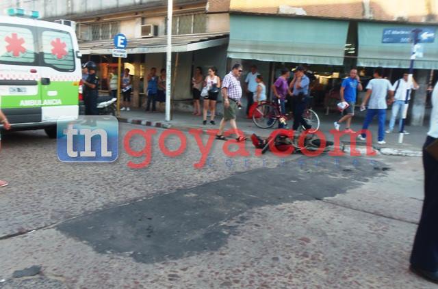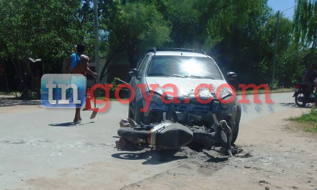 Alrededor de las 11 de la mañana una camioneta utilitaria marca FIAT Adventure de color gris dominio KKE 346 cuyo datos del conductor no trascendió, este impacto a una motocicleta marca Guerrero trip Tunning de color gris y sin dominio guiado por el ciudadano Antonio Tuama de 28 años de edad quien resulto con herida cortante en una de sus piernas; todo esto ocurrió en las calles Chile y Viamonte del B° Arco Iris.