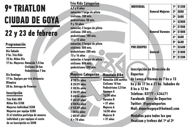 Este viernes en el Salón de Acuerdos del edificio municipal, se presentó ante los medios de comunicación locales el 9º Triatlón Ciudad de Goya, que se llevará a cabo los días 22 y 23 de febrero. El sábado será la prueba individual y el domingo el triatlón olímpico por equipos.
