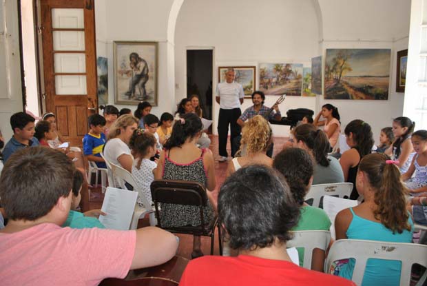 El Jefe Comunal profe Gerardo Bassi, visitó el martes a los chicos que en la Casa de la Cultura estaban participando del taller de canto que brinda el Director del área, Mariano Maciel.