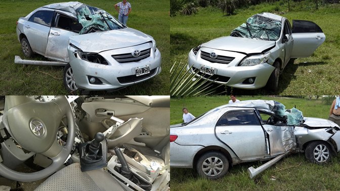En la mañana del viernes un automóvil marca Ford Focus conducido por Silvia Raimundi que transitaba por Evaristo López y al llegar a calle España embiste a un Fiat Vivace siendo arrastrado varios metros, en el mismo iban Daniel Rodas y Bárbara Aceval, quienes recibieron varias lesiones siendo asistidas por una dotación de Bomberos y posteriormente trasladados al Hospital regional de Goya. IMÁGENES