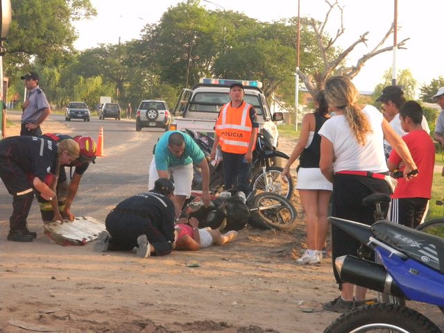 En la tarde del jueves en la intersección de Av. Francisco Sa y José J. Rolon, una mujer quien iba a bordo de una motocicleta Gilera Smash 110 c/c resulto con serias lesiones al embestir con una camioneta Ford Ranger. La motociclista en el impacto cayo pesadamente quedando sin poder moverse debido a los fuertes golpes, fue asistida por una dotación de Bomberos y luego trasladada al nosocomio local. IMAGENES
