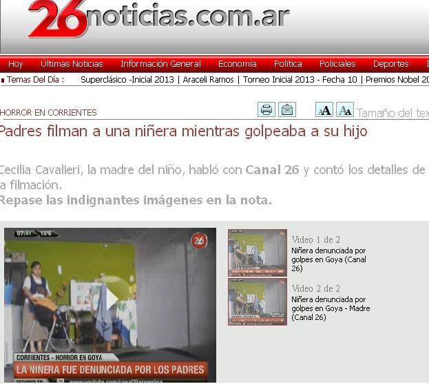 Cecilia Cavalieri, la madre del niño, habló con Canal 26 y contó los detalles de la filmación. Un matrimonio de la provincia de Corrientes subió a facebook una filmación que registró el maltrato a su hijo Guillermo de un año y tres meses. Tras ver las imágenes decidieron radicar dos denuncias: una por maltrato infantil y otra por hurto.