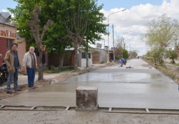Avanza lentamente el pavimento de la Avenida Eva Perón