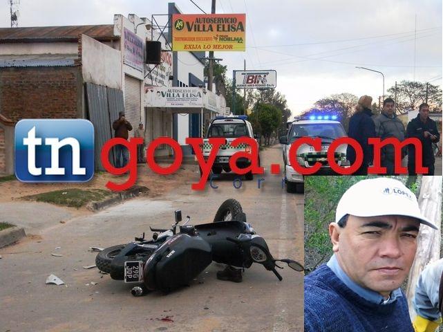 En la mañana del lunes ocurrió un siniestro vial en Av. Sarmiento y Almafuerte , donde una persona identificada como Omar Núñez empleado municipal del área luminotecnia a bordo de una motocicleta 110 marca Brava dominio JQP 290 fue chocado de frente por otra moto marca Gerrero Top guiada por un joven que se dio a al fuga del lugar luego del hecho, quedando tirado en la cinta asfáltica muy herido Núñez, quien debido a los fuertes golpes recibido fue trasladado a la Capital Correntina, confirmaron fuentes investigativas a TNGOYA. IMÁGENES