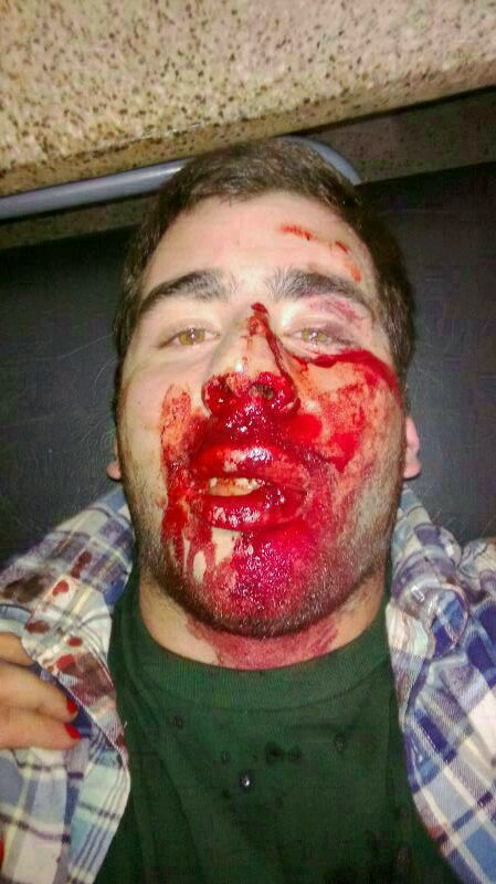 La persona agredida es un joven de 19 años de apellido Dowling, y fue hospitalizado por las heridas recibidas, en tanto los agresores fueron aprehendidos inmediatamente y continúan detenidos. El hecho ocurrió el pasado sábado a las 5 y 20 de la mañana un grupo de jóvenes atacó con baldosas a una persona a la salida de un local bailable. IMAGEN DE COMO QUEDO EL JOVEN AGREDIDO